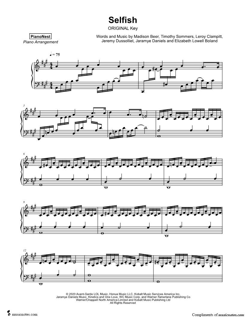 Many of the arrangements on Musicnotes have transpositions available, typically in C Major, as well as 3 sharps and 3 flats. If you do not see your desired key, you can request a transposition by reaching out to Customer Support.