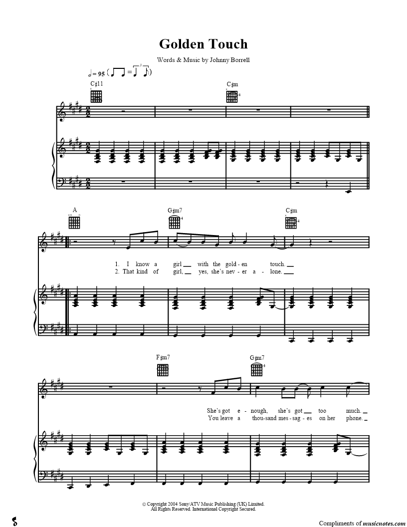 I know a girl with the golden touch. She's got enough, she's got too much. |