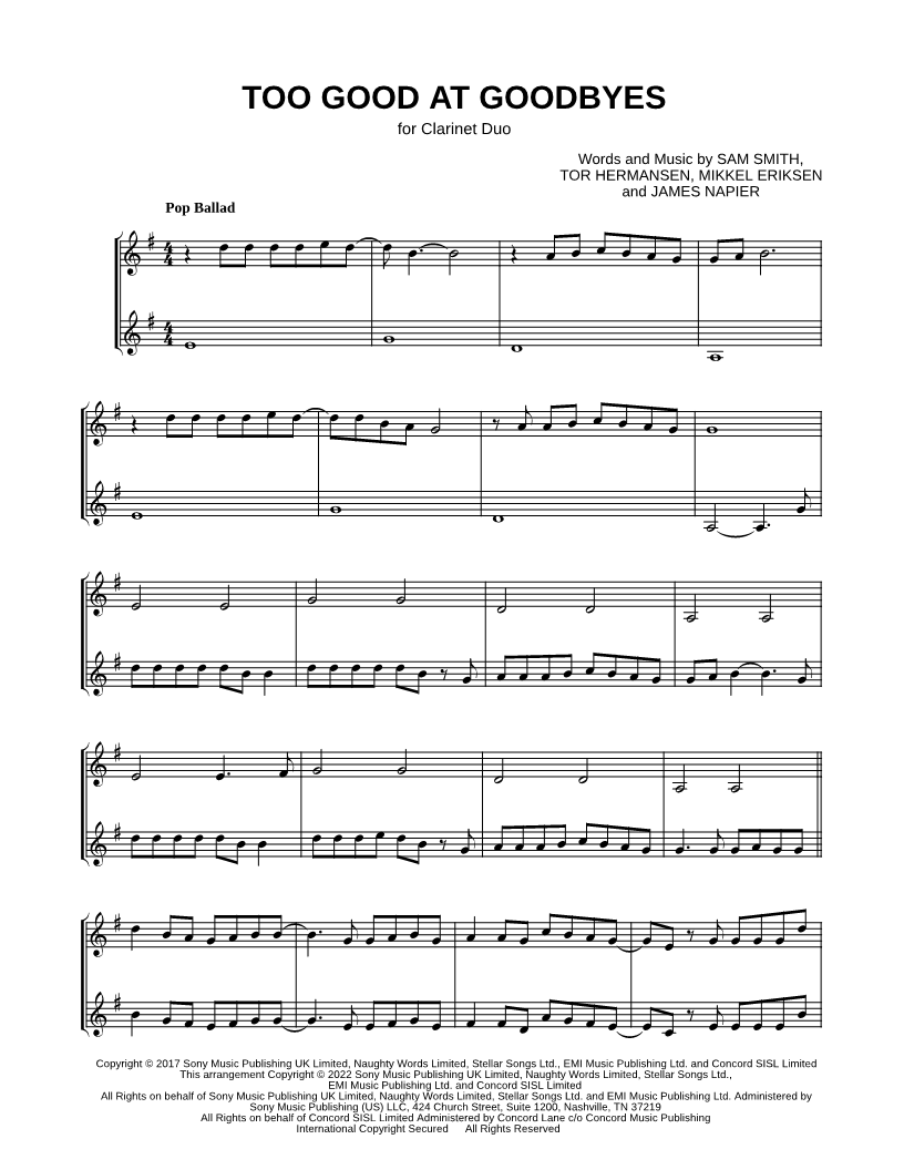 Too Good at Goodbyes - Clarinet Duet |