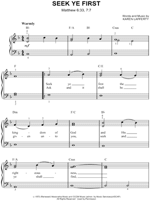 Lyrics begin: "Seek ye first the kingdom of God and His righteousness, and all these things shall be added unto you."