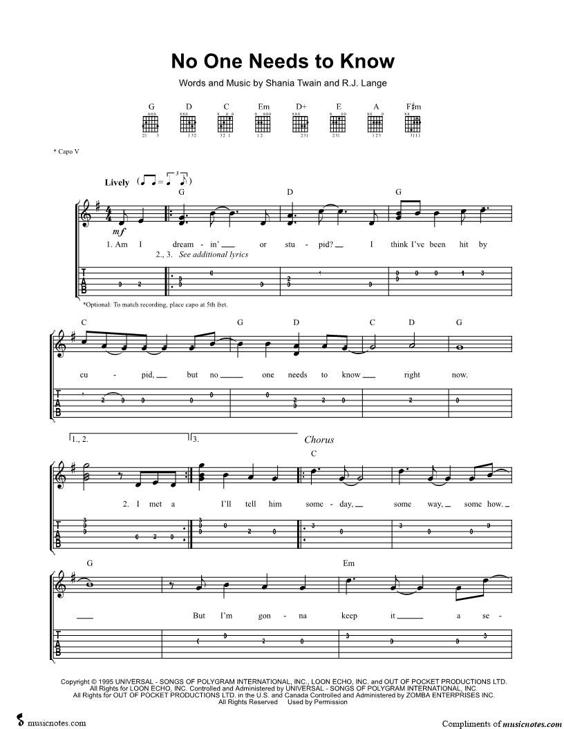 Guitar Tab Guitar/Vocal |