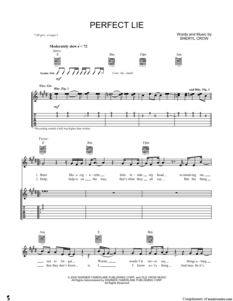 Guitar/Vocal Guitar Tab |