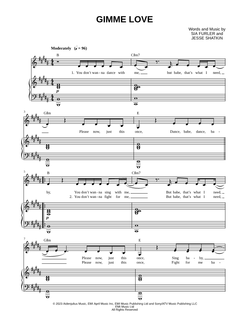 Voice, range: G#3-E5 Piano Backup Vocals | |