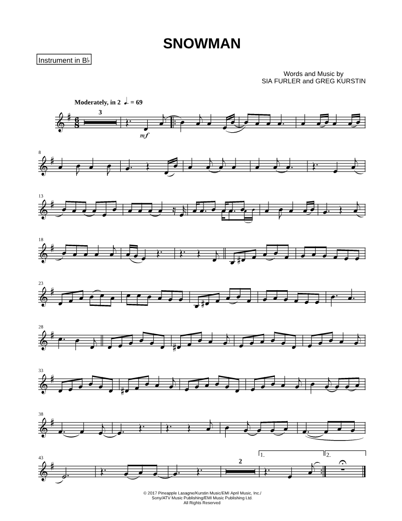 Bb Instrument, range: B3-C5 (Trumpet, Clarinet, Tenor Saxophone or Soprano Saxophone) | |