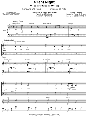 Lyrics begin: "Silent night, holy night, all is calm, all is bright."