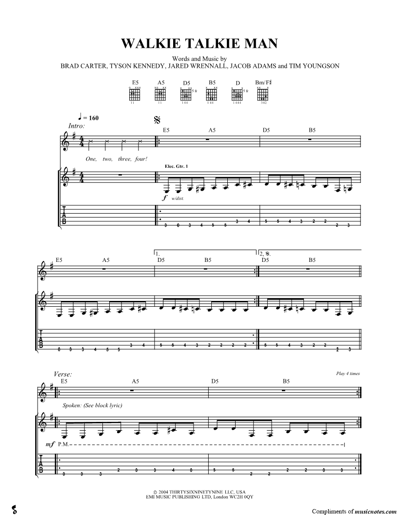 Guitar Tab Guitar/Vocal |