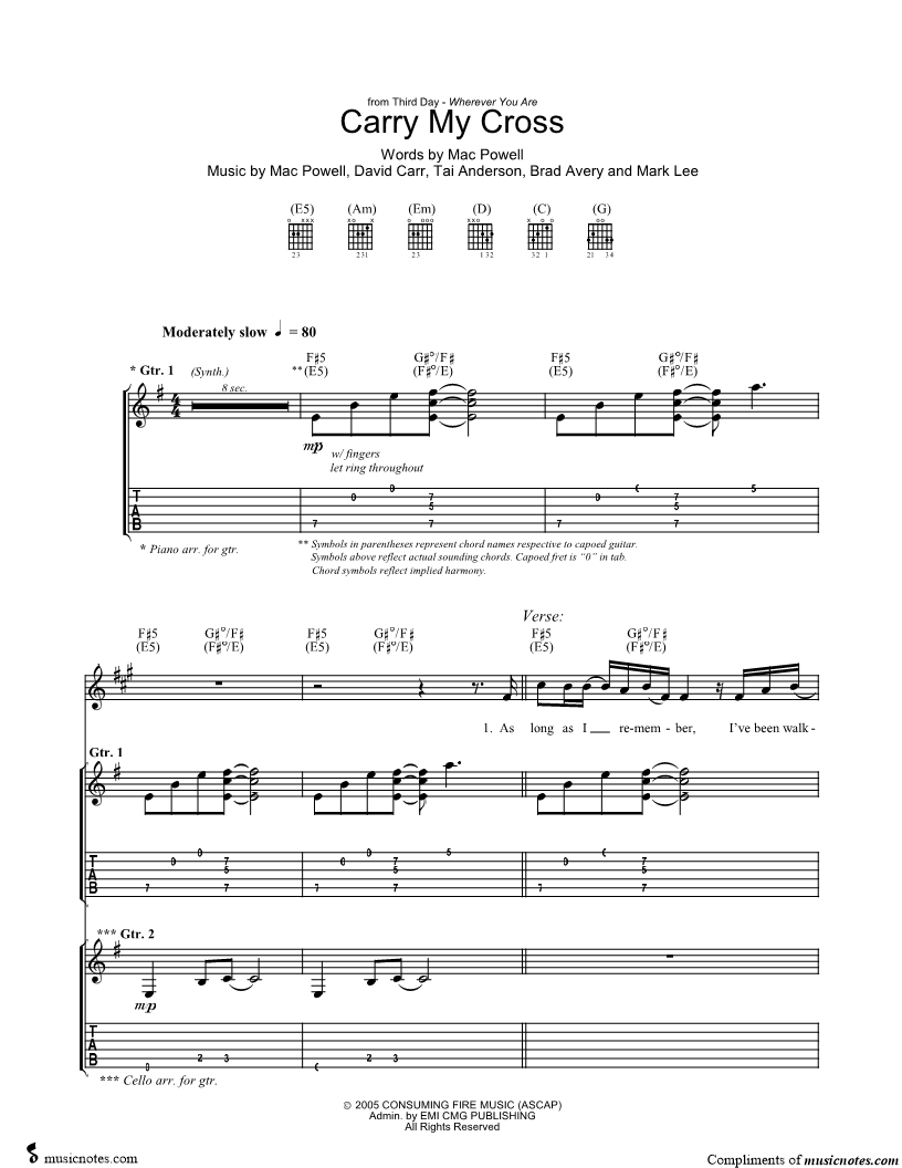 Voice, range: C#4-F#5 Guitar 1, range: E3-A6 Guitar 2, range: E3-C6 Guitar 3, range: E3-B5 Guitar 4 Guitar 5 Guitar 6 Guitar 7 Guitar 8 Guitar 9 Guitar 10 Backup Vocals, range: D4-F#5 Strum | |