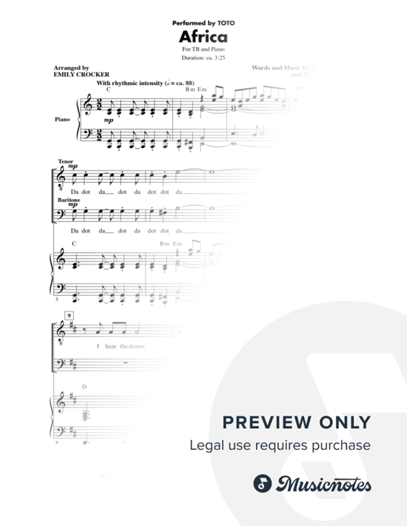 Many of the arrangements on Musicnotes have transpositions available, typically in C Major, as well as 3 sharps and 3 flats. If you do not see your desired key, you can request a transposition by reaching out to Customer Support.