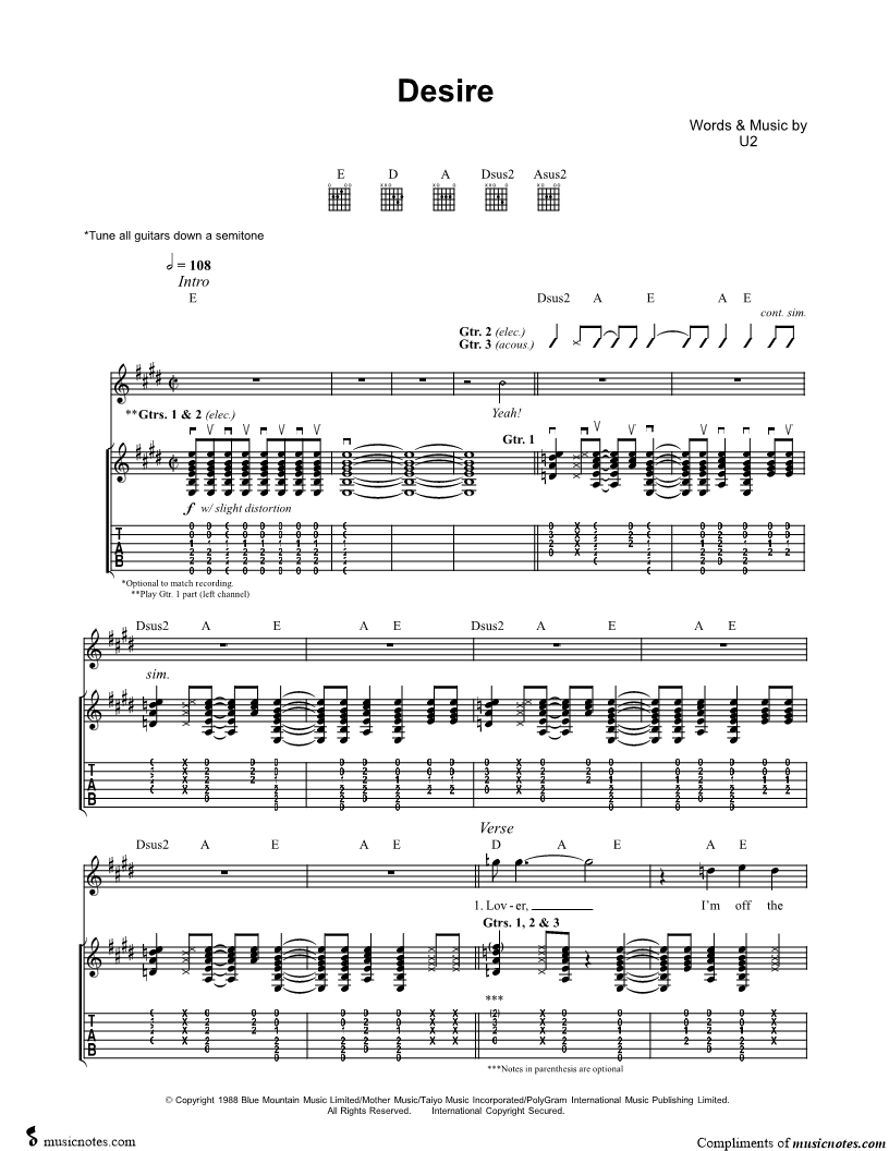 Guitar Tab Guitar/Vocal |
