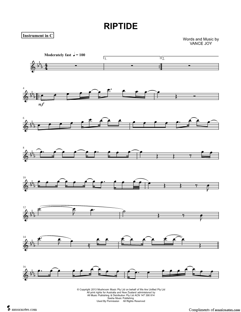 C Instrument, range: Bb4-C6 (Violin, Flute, Oboe or Recorder) | |