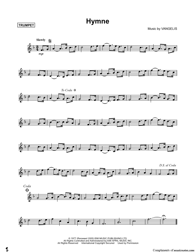 Trumpet, range: C4-F5 | |