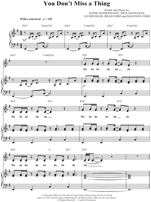 Browse our 1 arrangement of "You Don't Miss a Thing."